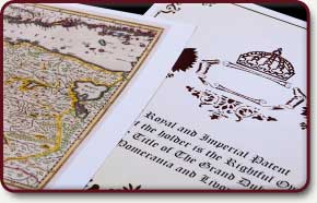 And the Special Titles of Archduke and Prince Elector, the king-like titles All the titles have the same price, 199€, plus 20€ for packing, postage and delivery expenses. We ship worldwide. For 299€ you can buy a pair of titles, the two any titles you most like, at that discounted price.