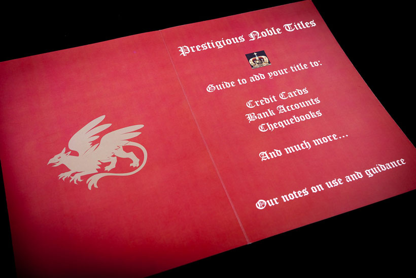 It is now easy to become a Lord or Lady with one of our grandiose and magnificent packages, intelligently designed to cater for you’re the most stringent needs of a titled man or woman.